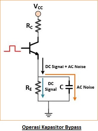 Kapasitor Bypass dipraktekkan antara pin catu daya VCC dan GND dari rangkaian terinteg…
